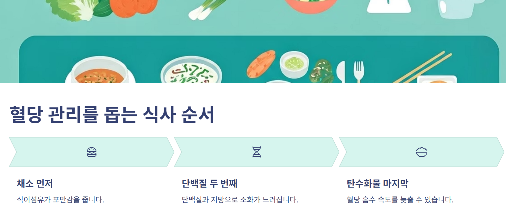 당뇨병은 조기 증상 파악, 식이요법 실천, 좋은 음식 섭취, 올바른 식사 순서를 통해 충분히 관리할 수 있습니다. 혈당을 천천히 올리는 식습관과 식사 순서만 바꿔도 큰 도움이 되니, 오늘부터 실천해보세요. 작은 실천이 건강한 내일을 만들어 줍니다.