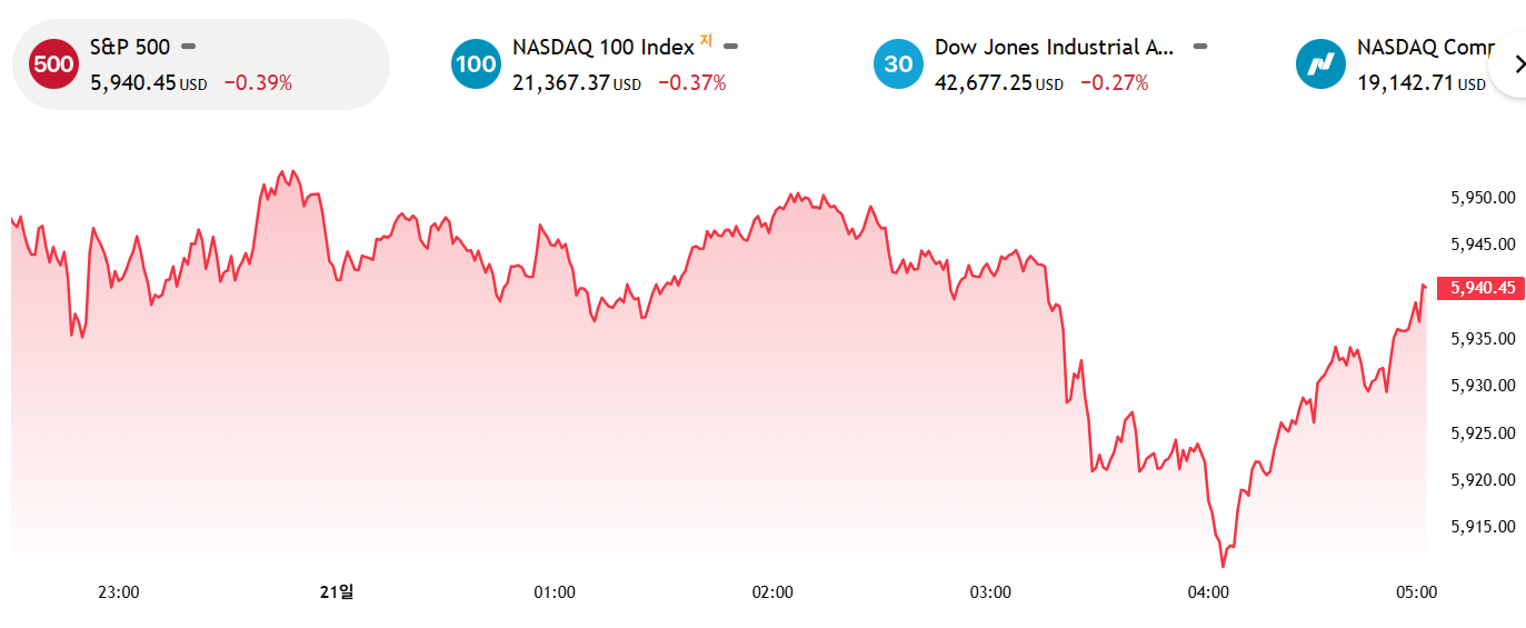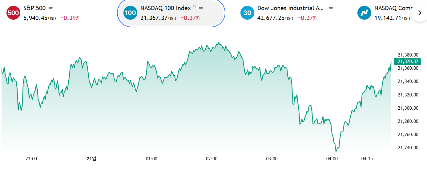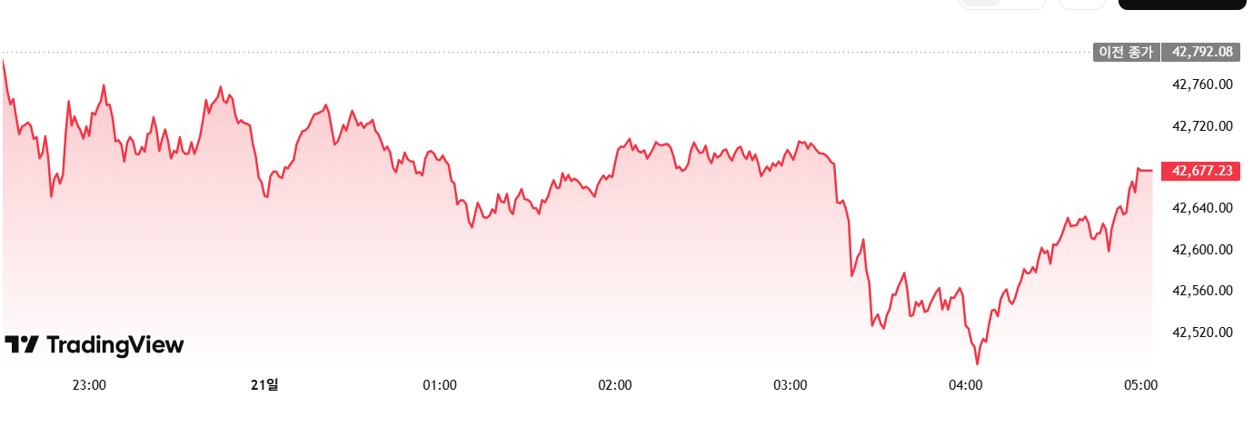 | 다우존스 (DJIA) | 42,677.24 | -114.83 | -0.27% |