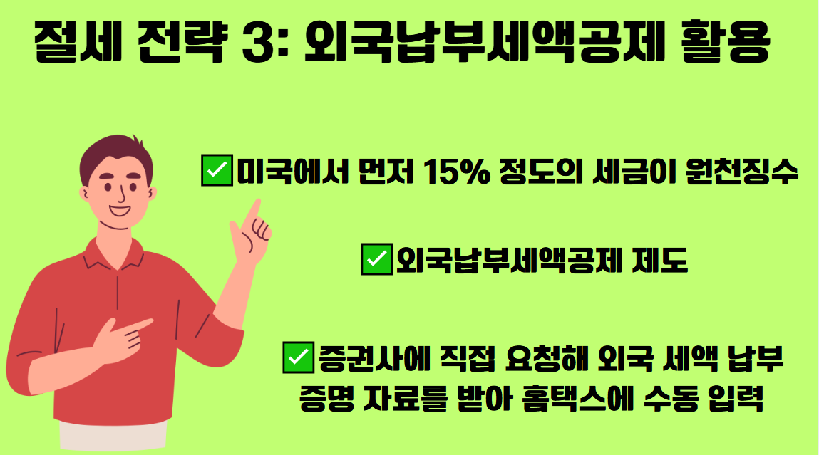 | 외국납부세액공제 | 증권사 자료 제출 후 홈택스 수동입력 | 이중과세 방지로 수백만 원 절세 |