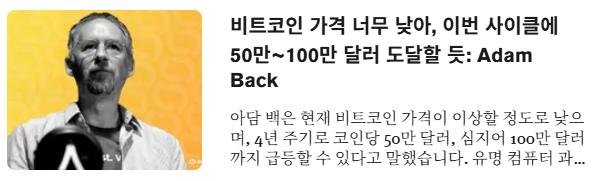 Blockstream CEO 아담 백은 Decrypt와의 인터뷰에서 “비트코인 가격이 너무 낮다”고 언급하며, 이번 상승 주기 내에 50만 달러에서 100만 달러까지도 가능하다고 밝혔습니다. 그는 4년 주기의 반감기 패턴, 기관 자금 유입 등을 근거로 삼았습니다.