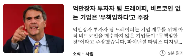 억만장자 투자자 팀 드레이퍼는 올해 안에 비트코인이 25만 달러에 도달할 것이라 확신하며, 기업들이 비트코인을 보유하지 않는 것은 "무책임하다"고까지 말했습니다.