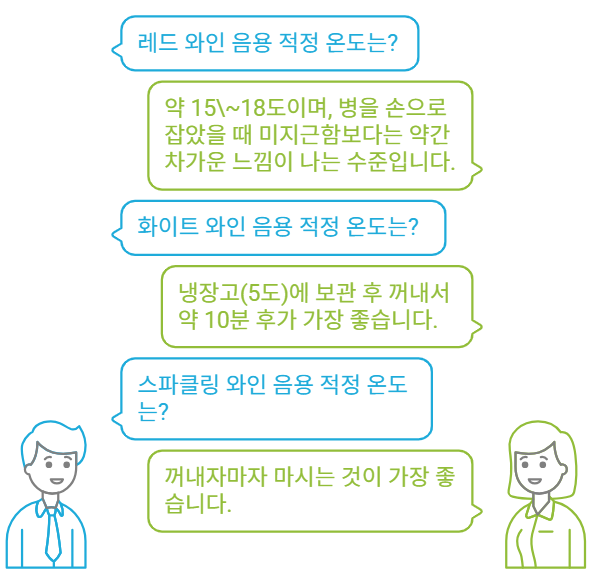 와인의 풍미는 온도에 따라 극명하게 달라집니다. 레드 와인은 약 15~18도가 적정한데, 이 온도는 병을 손으로 잡았을 때 미지근함보다는 약간 차가운 느낌이 나는 수준입니다. 화이트 와인은 냉장고(5도)에 보관 후 꺼내서 약 10분 후, 스파클링 와인은 꺼내자마자 마시면 가장 좋습니다. 너무 차가우면 향이 잘 안 나고, 너무 따뜻하면 알코올 향이 강하게 올라오기 때문에 정확한 온도 조절이 중요합니다.