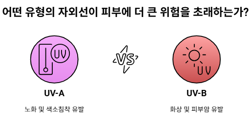 - UV-A: 피부 진피층까지 침투 → 노화, 색소침착 유발