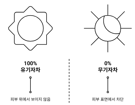 ▶ 무기자차: UV를 반사 및 산란 → 피부 표면에서 차단