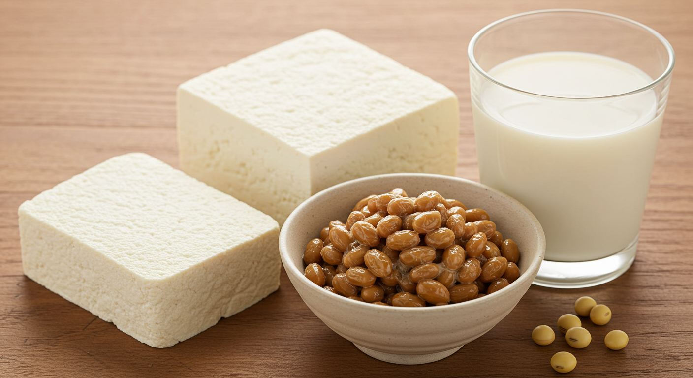 대표적인 콩 가공식품으로는 두부, 콩자반, 비지, 무가당 두유, 낫토(일본식 발효 콩) 등이 있고, 특히 낫토에는 나토키나제라는 혈전 용해 효소가 들어 있어 혈관 건강 유지에 도움이 됩니다.