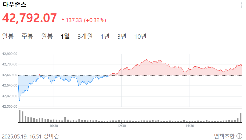 | 다우존스 산업평균지수 | 42,792.07 | +137.33 | +0.32% |