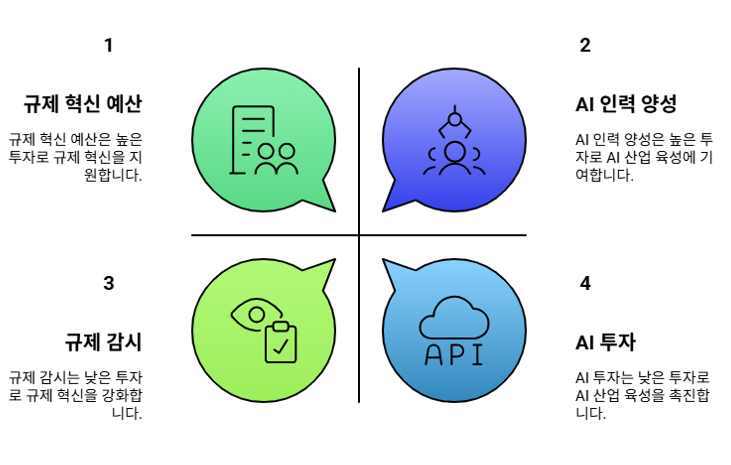 세 후보 모두 AI 및 미래 산업을 국가 발전의 핵심으로 인식하고 있으나, 접근 방식에는 차이가 있습니다. 이재명 후보는 정부 주도의 대규모 투자를 통해 AI 산업을 육성하고, 전 국민이 AI 기술을 활용할 수 있는 환경을 조성하겠다는 계획입니다. 김문수 후보는 규제 혁신과 기업 환경 개선을 통해 AI 산업을 활성화하고, 전문 인력 양성을 통해 AI 강국으로 도약하겠다는 목표를 세웠습니다. 이준석 후보는 정부의 역할을 최소화하고, 민간 주도의 효율적인 AI 산업 발전을 강조하며, 정부의 과도한 개입에 대한 우려를 표명했습니다.