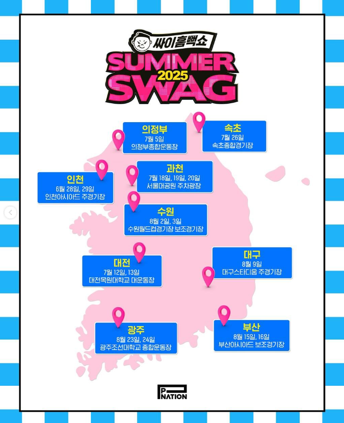 🎶 Pnation 인스타에 2025 싸이흠뻑쇼 예매 일정이 드디어 공개되었습니다. 일정 알람해두세요^^