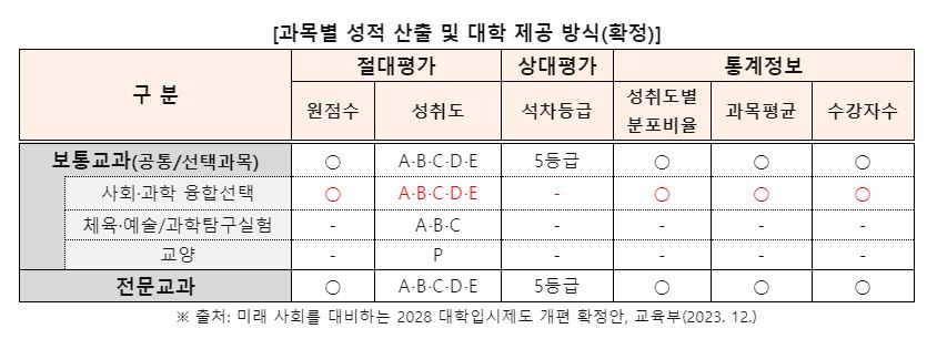 변경(5등급제, 2028학년도)