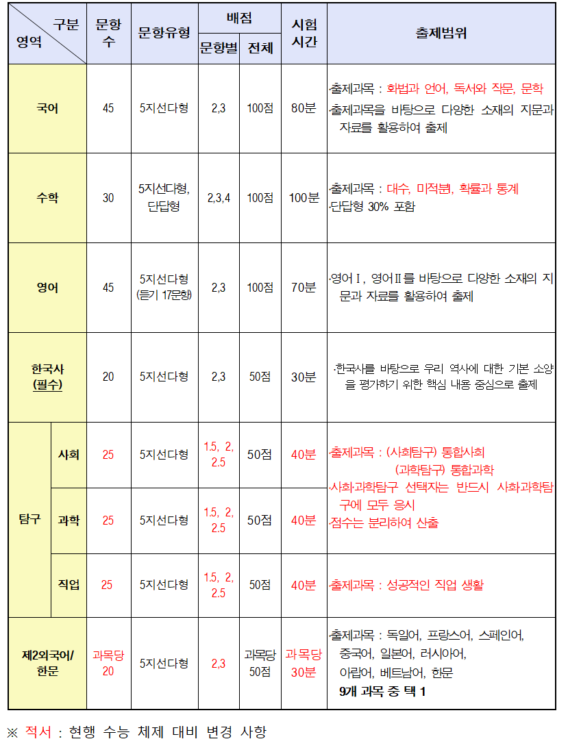 - 탐구영역은 통합 개편되어 선택형 없이 공통 출제