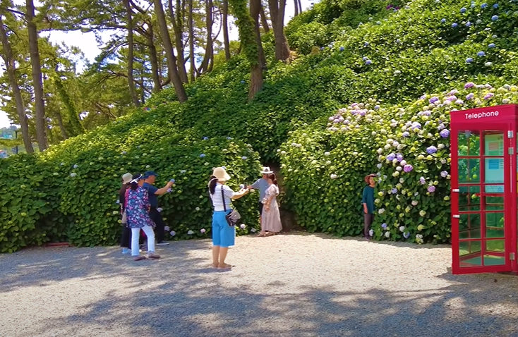 - 저구항: 바닷가 바로 옆에 수국이 펼쳐져 있어 풍경이 압도적이에요. 빨간 전화부스, 거대한 벤치 등 유명한 인생샷 포토존도 많습니다.