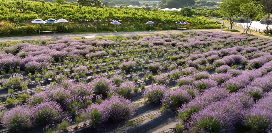 10만 평 규모의 국내 최대 단일 라벤더 단지로, 6월에는 보랏빛 라벤더 축제가 열립니다. 깔끔하게 정돈된 꽃밭과 다양한 조형물, 포토존이 인상적이며 언덕 위에서 내려다보는 풍경은 정말 장관이에요.