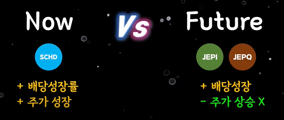 예를 들어 QYLD는 배당률이 매우 높지만, 주가 상승보다는 수익을 배당으로 대부분 지급하기 때문에 자산의 성장성이 낮습니다. 반면 SCHD는 배당뿐만 아니라 주가 상승도 기대할 수 있어 현금 흐름과 자산 증식의 균형을 맞추는 데 유리하죠.